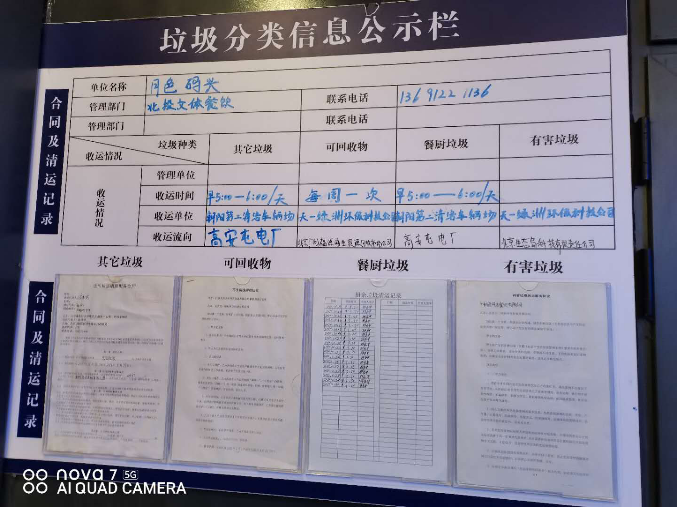 在奧林匹克中心區(qū)月色碼頭,集團(tuán)所屬北投文旅公司通過設(shè)置分類垃圾桶,并在垃圾桶上貼“可回收”和“不可回收”“廚余垃圾”等標(biāo)識(shí),積極引導(dǎo)就餐顧客準(zhǔn)確投放垃圾。