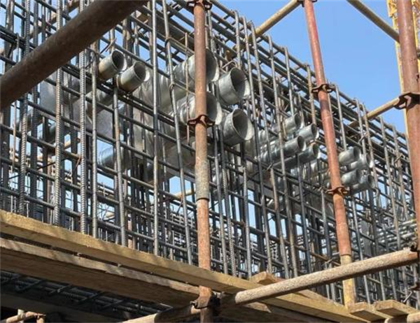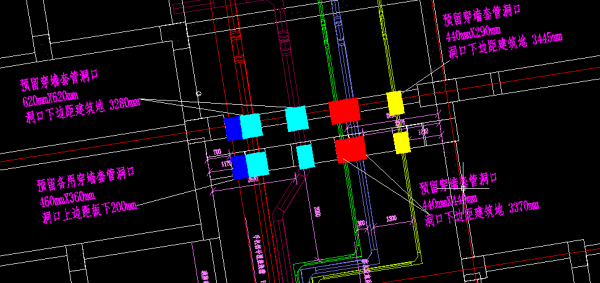 (4)機電預(yù)埋:項目人防區(qū)域兼做車庫應(yīng)用,一次結(jié)構(gòu)的預(yù)埋管件數(shù)量及種類繁多,在機電管線深化的起始階段,針對各專業(yè)圖紙進行全面識圖,結(jié)合施工規(guī)范,對預(yù)埋套管的具體加工尺寸進行統(tǒng)計。應(yīng)用BIM技術(shù)在管綜基礎(chǔ)上進行預(yù)埋套管的模擬排布,其中強弱電預(yù)埋套管的大部分皆穿越人防門頂部,在此處需進行精準(zhǔn)深化預(yù)埋。